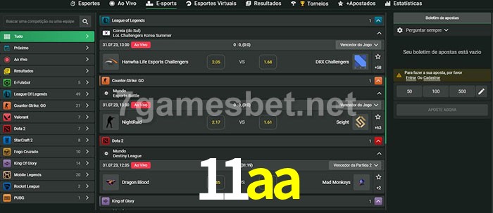 O 11aa oferece uma grande seleção de opções de apostas em e-sports com probabilidades competitivas